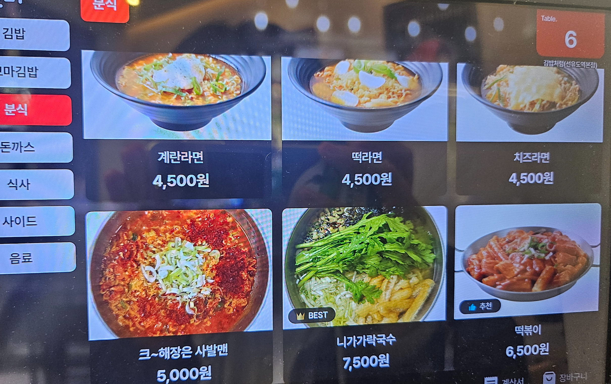다른 메뉴들도 많았었는데 한정수량이라는 문구와 초반의 김밥천국 정도일 거라는 인식에 그냥 중복된 메뉴를 시켰었는데 음식들이 하나같이 다 맛있어서 중복메뉴가 아닌 다른 메뉴를 시켜서 나눠 먹을걸 하는 후회도 생겼었었다.