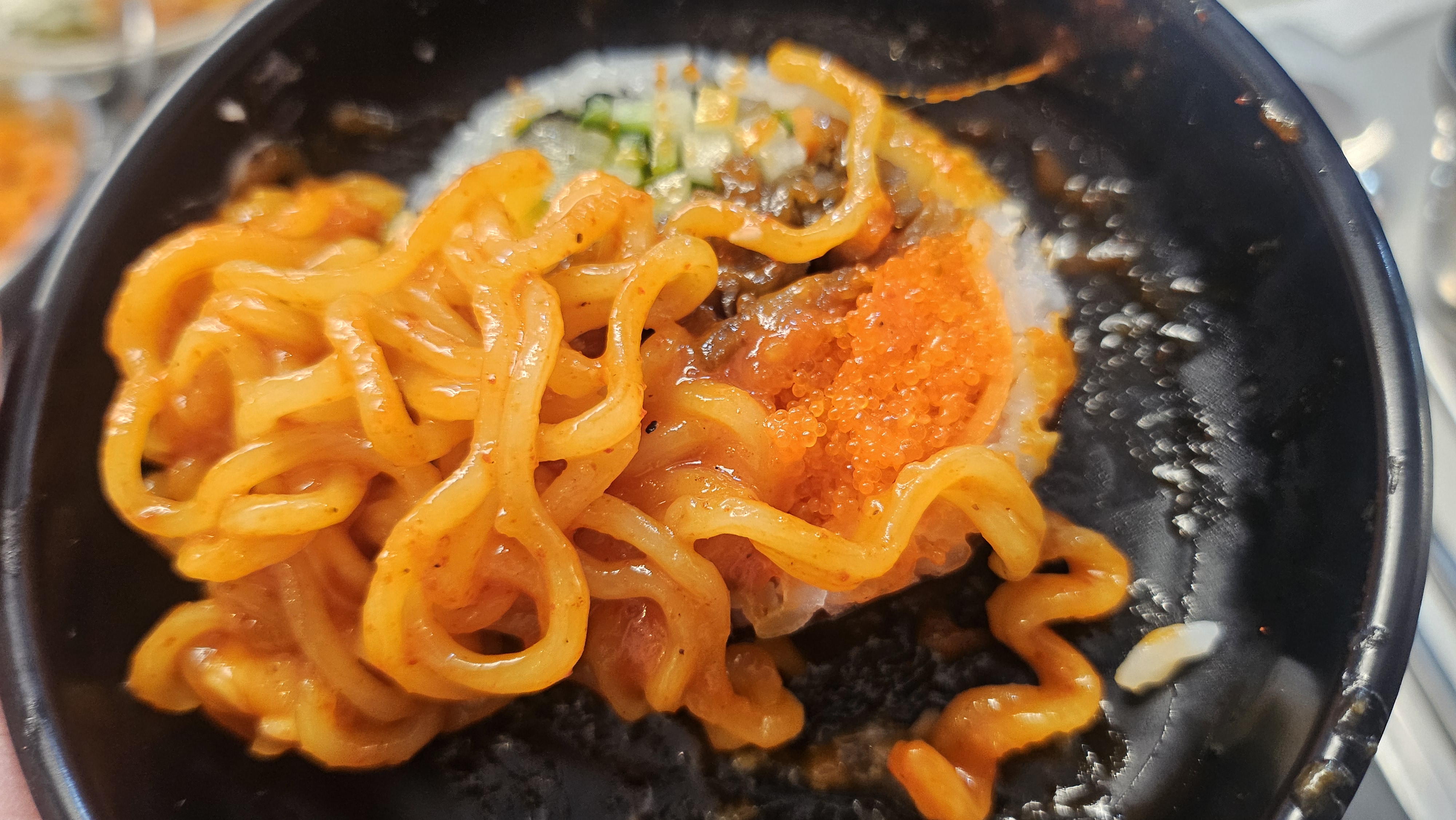 라볶이 치즈양도 어마어마한테 날치알의 날치양도 엄청나다 ㄷㄷ