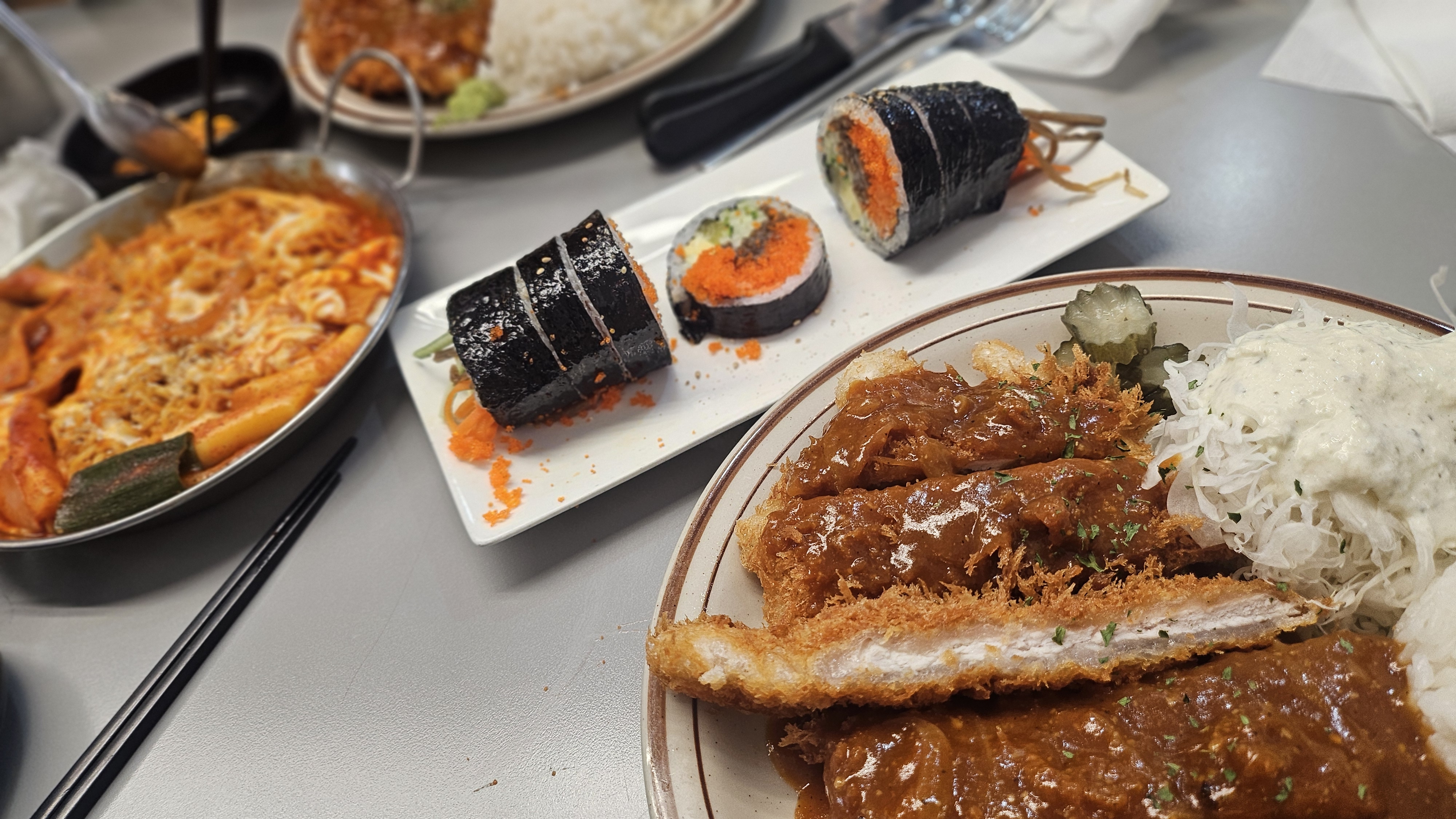 중간중간 친구의 라볶이를 한입씩 얻어먹었었는데 돈까스와 라볶이의 조합도 엄청나다...