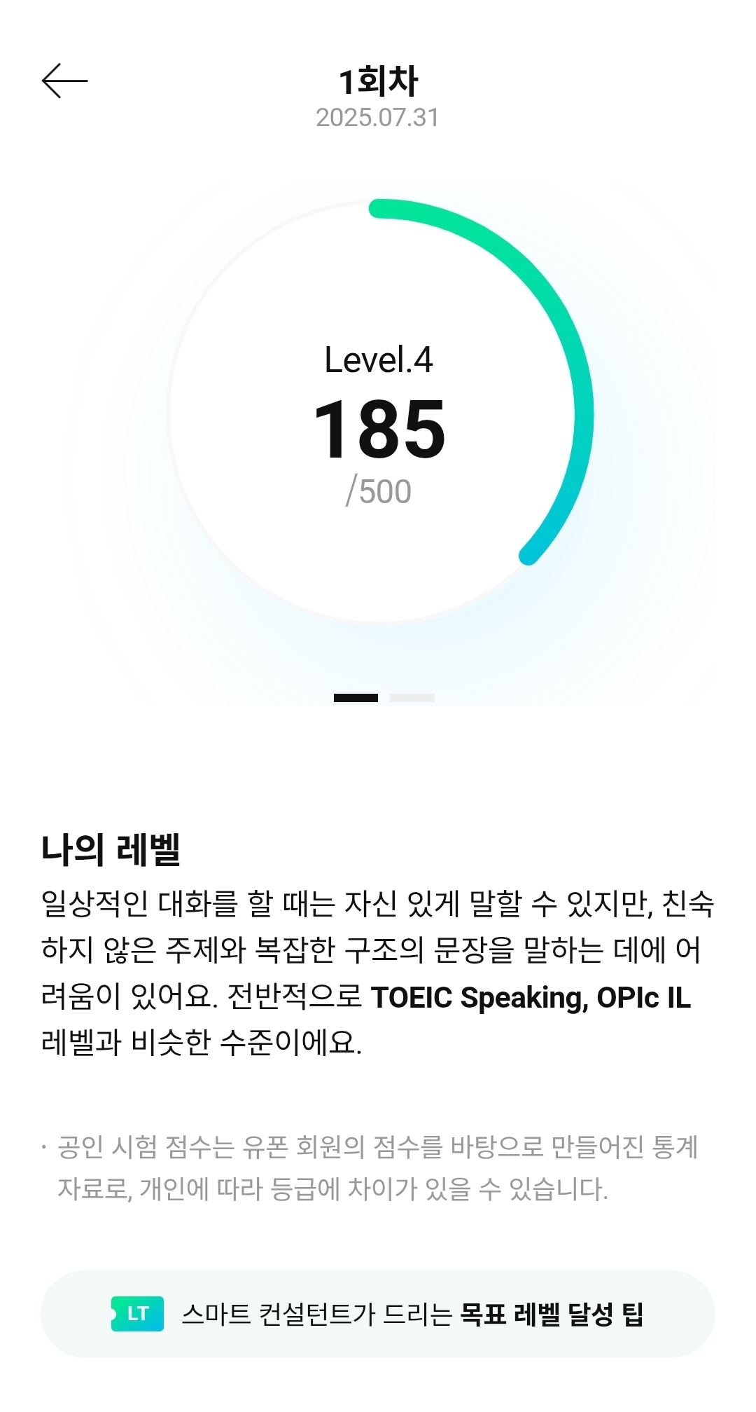 점수를 보니 처음 전화영어 수업을 듣고자 무료체험했을때와 거의 같은 점수였다. 허허 이렇게 허탈할 줄이야 (내다 버린 20회...)