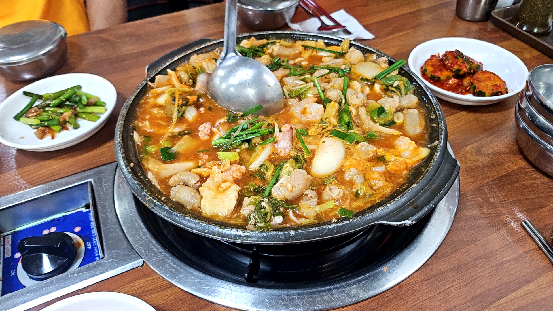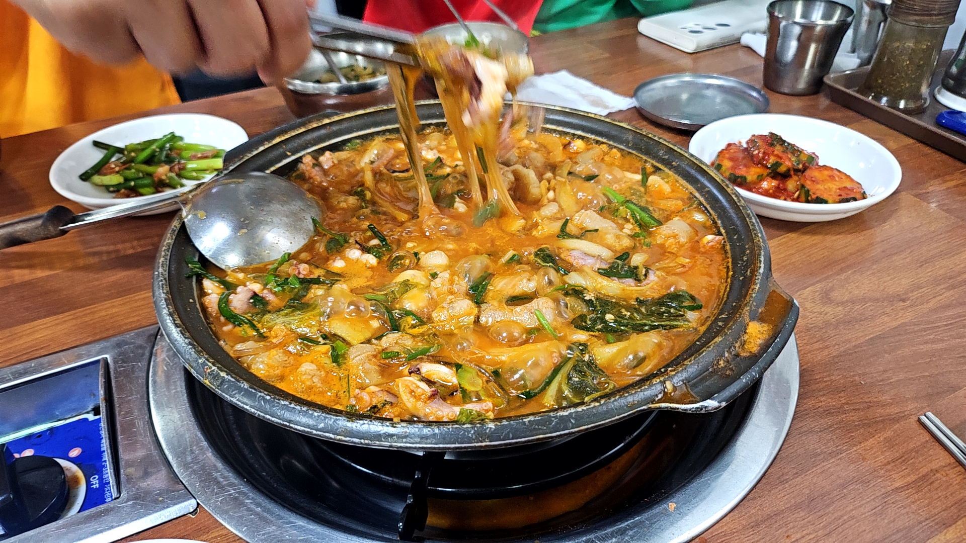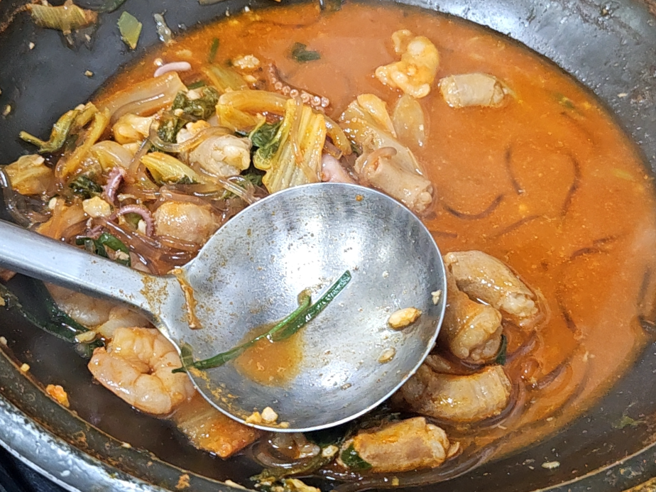 서울에서 배달음식에 주로 있던 낙곱새들을 보면 빨간 기름과 양념들이 주였던지라 저 국물색이 조금은 낯설게 느껴졌다.
