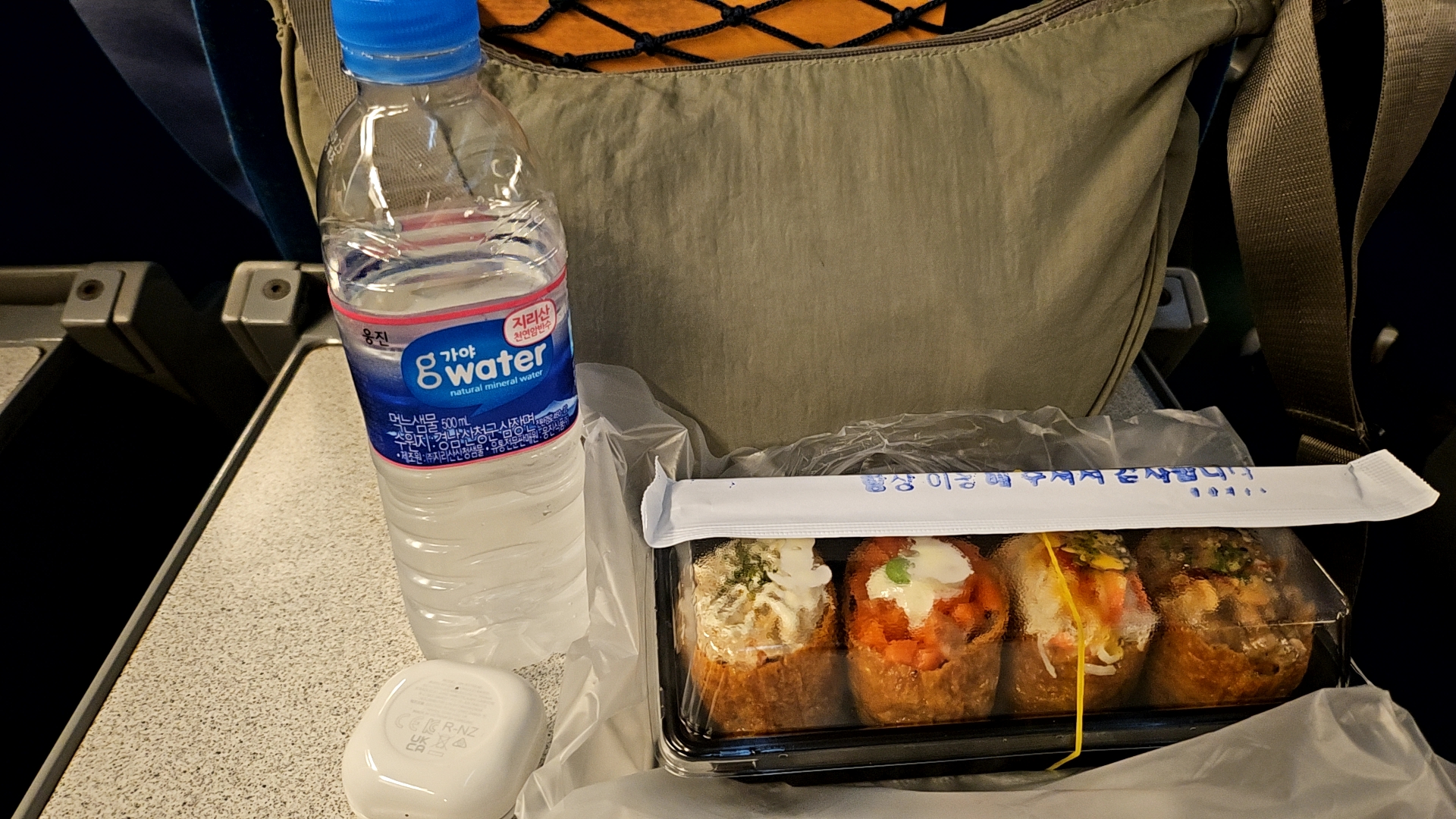 햄버거를 포장해가려 했으나 지하철 타고 서울역에 도착하니 시간이 정말 없어서... 서울역에서 자주 먹던 쉐프의 한 끼의 유부초밥을 급하게 사서 바로 기차에 탔다.