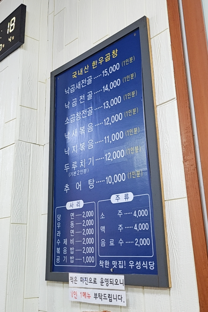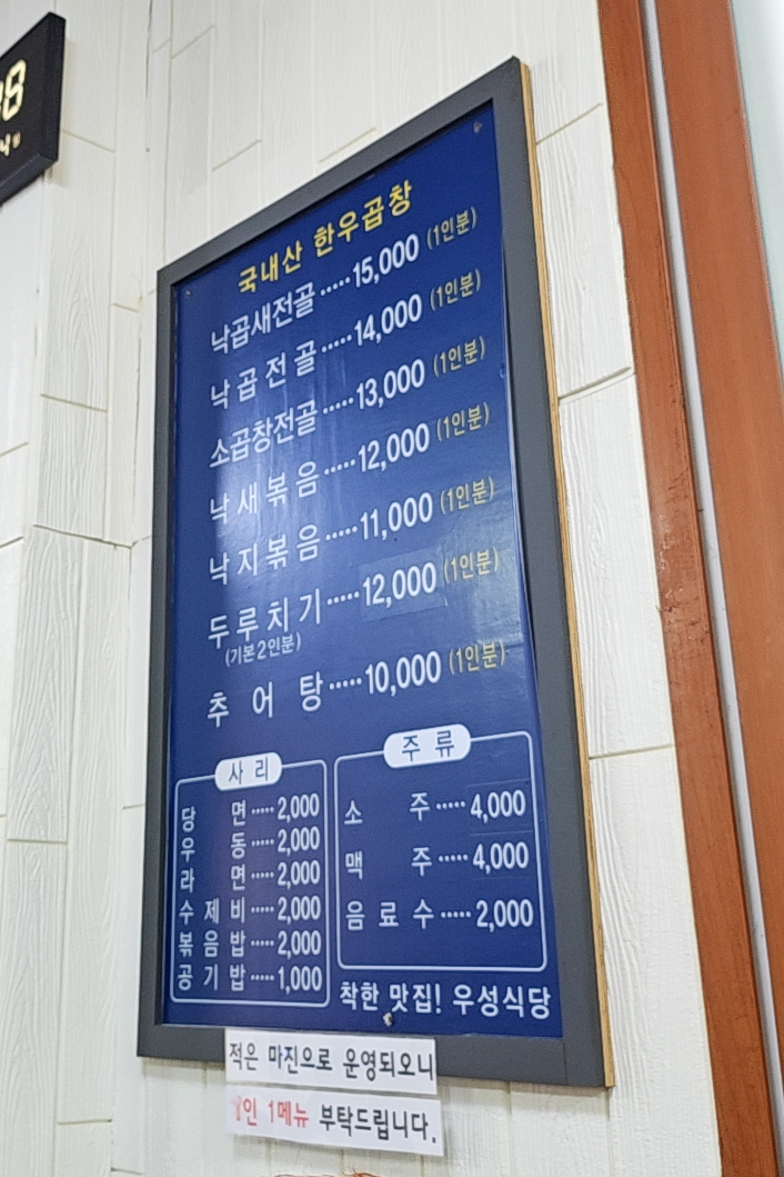 우성식당 메뉴 및 가격