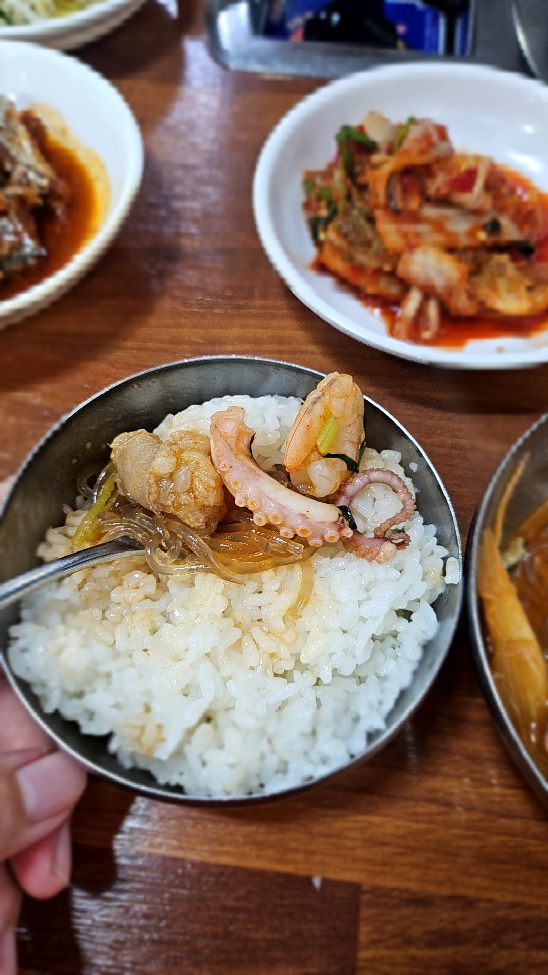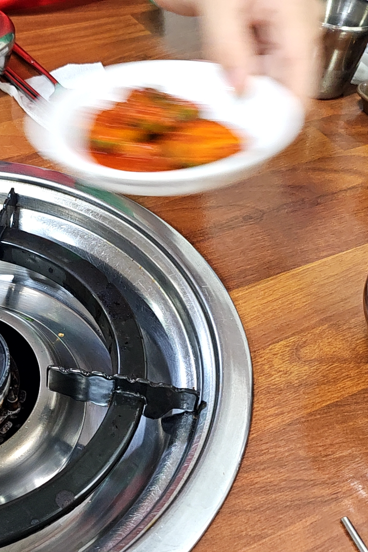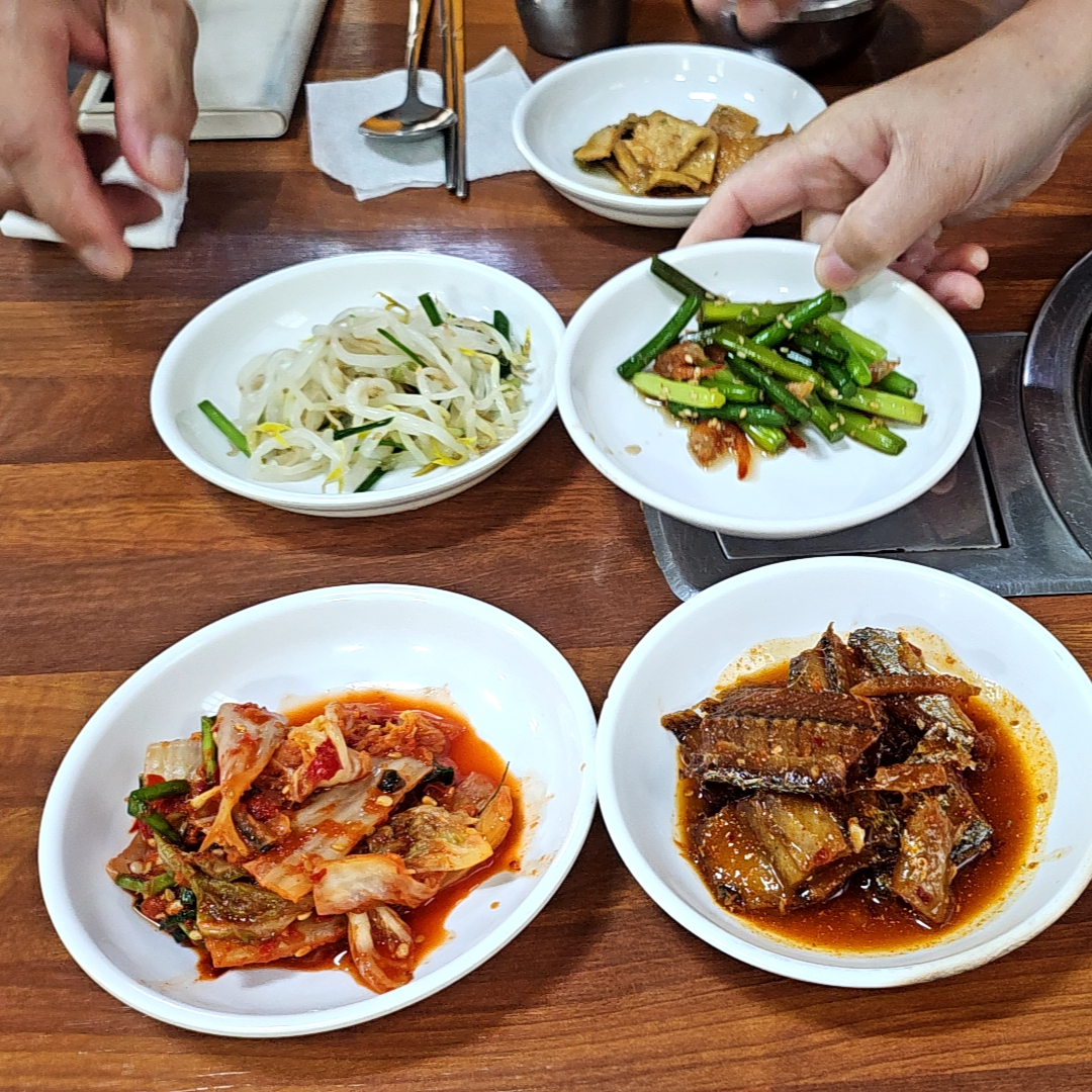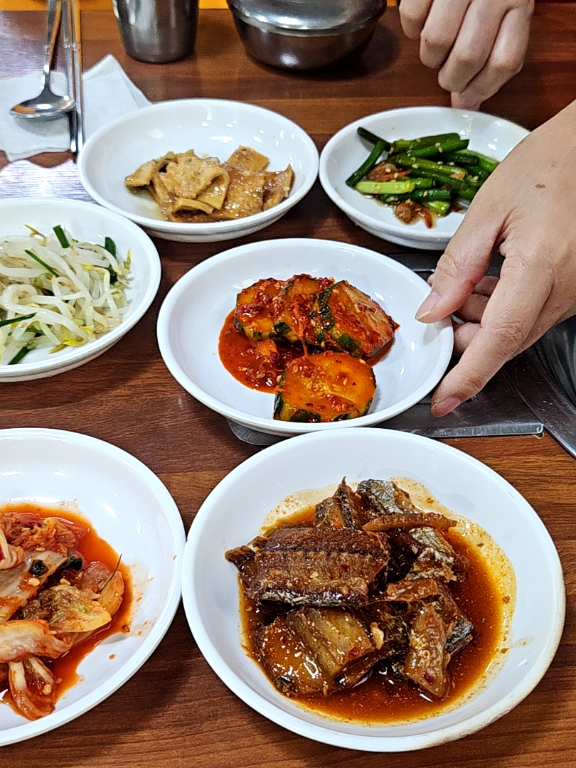 사장님께서 반찬을 내려놓자마자 서로 맛있는걸 먹으라며 반찬 위치를 바꾸는 게 참 웃겼다. 어릴 때부터 하도 반찬이동이 심하다 보니 암묵적으로 금기시켜 놨었던 룰인데 성인이 되고 서울로 가고 집에 오는 날이 굉장히 드물어지니까 다시 반찬이동이 시작되어 버렸다.
