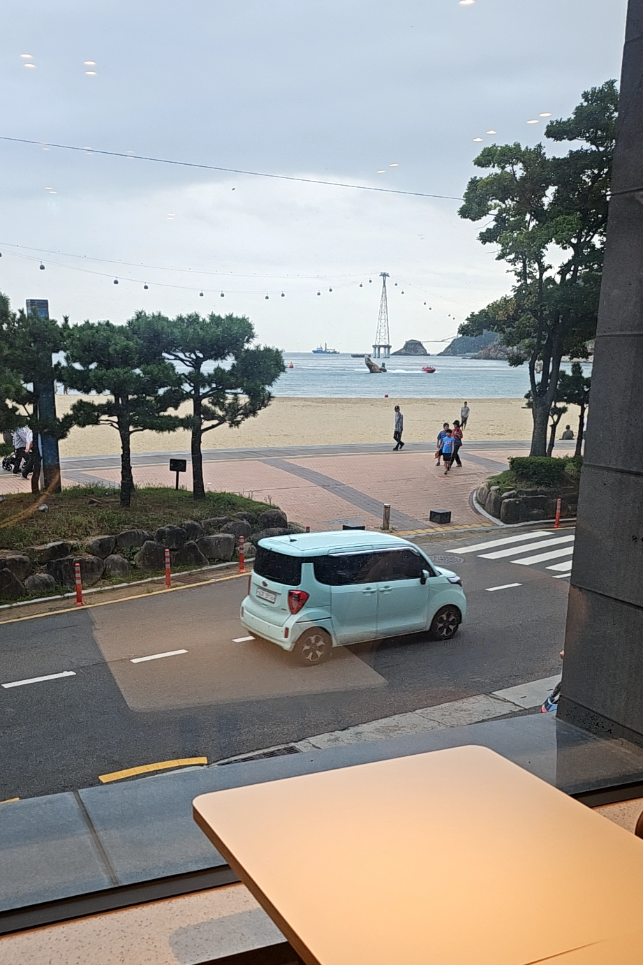 노트북 하기 좋다. 창가 쪽이 아닌 안쪽에 위치해 있어서 바다는 작게 보이긴 하다. 일반적인 투썸의 노트북석보다는 자리가 적다.
