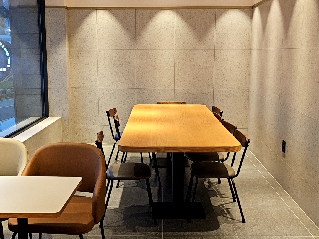 80%가 4인석인 듯, 어떤 테이블은 낮고 어떤 테이블은 낮지가 않은데 낮은 테이블이 있는 4인석은 정말 쉬기 좋아서 쉬는 것만 추천한다. 창가 자리들은 전부 4인석이다. 어떤 자리는 충전하는 곳이 없다.