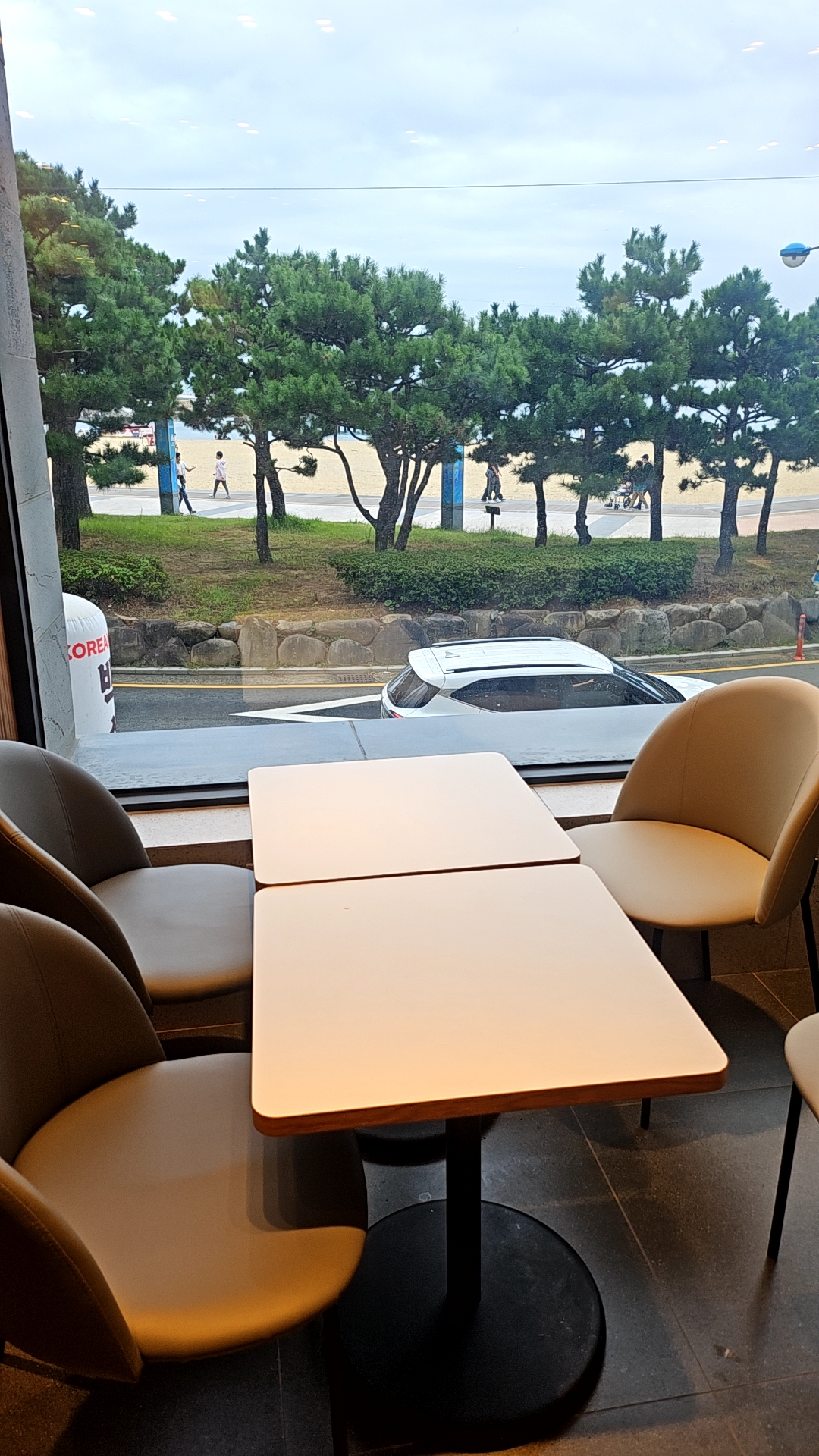 투썸플레이스 송도점이 바다뷰 카페긴 하나 소나무뷰인 자리도 있는데, 소나무뷰인 자리는 바다뷰인 자리보다 인기가 덜해서 금방 자리가 빠진다. 마침 소나무뷰 쪽 4인석 자리가 났길래 사진 한 장 찍으려는데 저 멀리서 질주해 오는 남성분의 절박함이 보여 자리에서 물러나 4인석을 탐할 의사가 없다는 걸 몸으로 보여드렸다. 안심하셨는지 다른 일행 2명과 함께 오시더니 음료를 마시고 20분도 안 되어서 바로 가버리셨다.