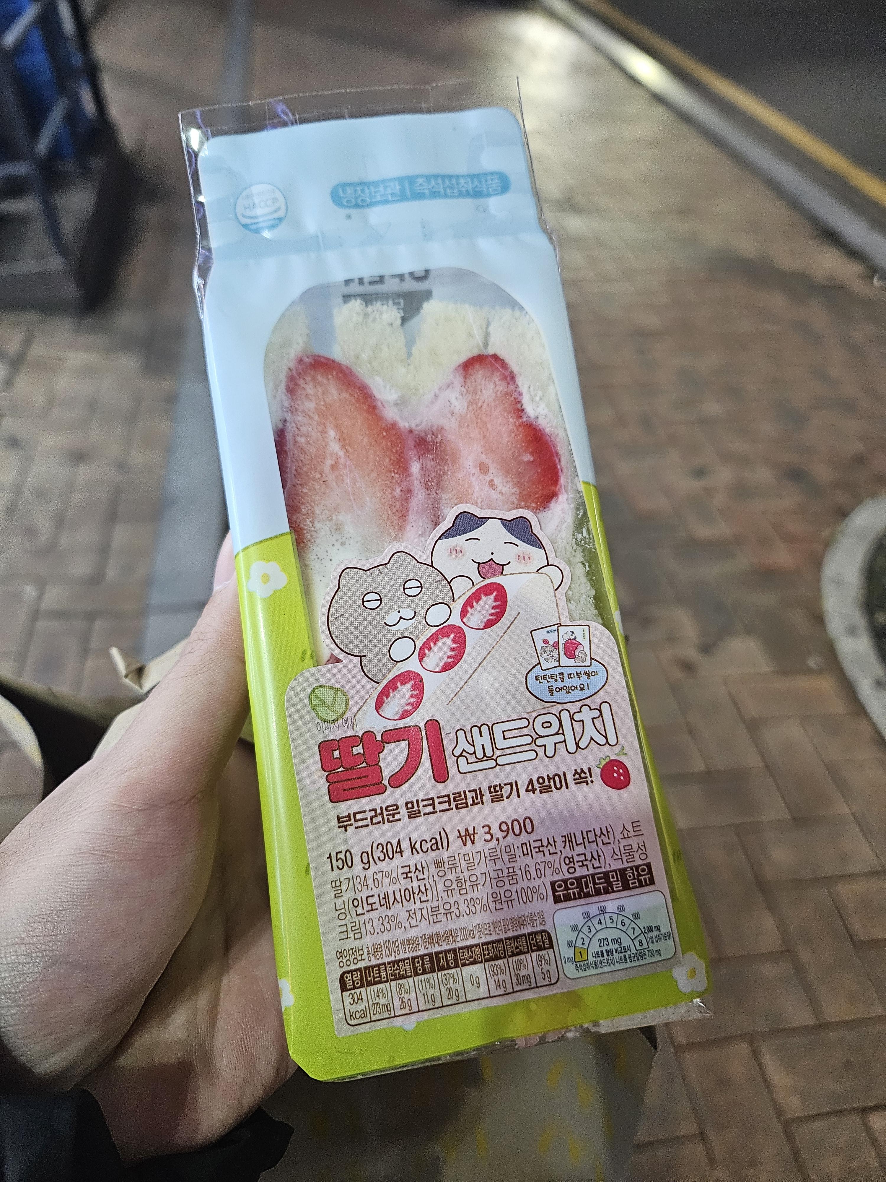 크림 묻고 딸기가 들어있어서 흐물텅한 샌드위치에 씰스티커가 딱 붙어진 채로 판매되는 건 아닌가 했는데 관리가 잘 되어있어서 좋다.